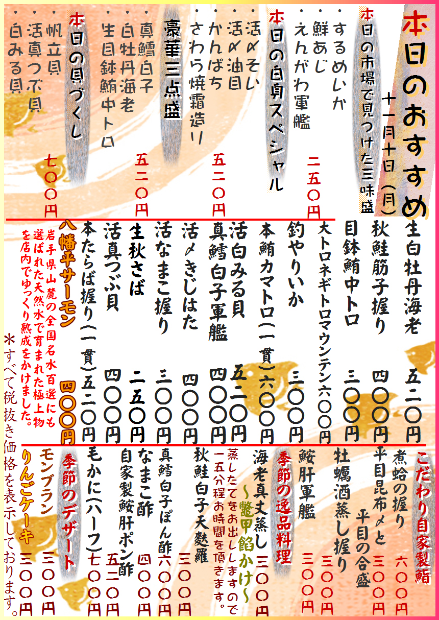 釣どんこ・やりいか・真鱈白子・生さば・・・ 冬の味覚満載!!