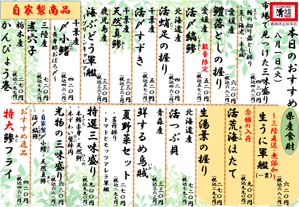 回転鮨清次郎盛岡津志田本店の店長とスタッフによるブログ